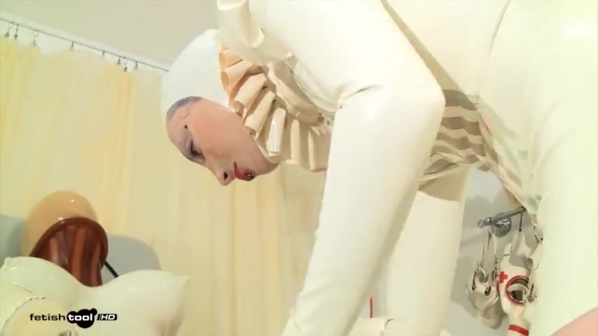 Девушки в белых латексных костюмах принимают участие в фетиш-видео.